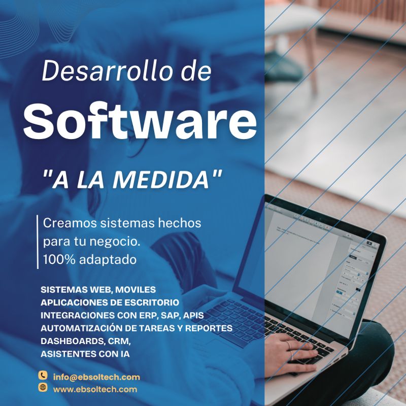 Sistemas personalizados para gestionar procesos internos, inventarios, finanzas y operaciones.